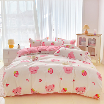 Juego de cama de cuatro piezas de estilo moderno con patrón de dibujos animados Precio de fábrica Opción de sábana de tres piezas disponible