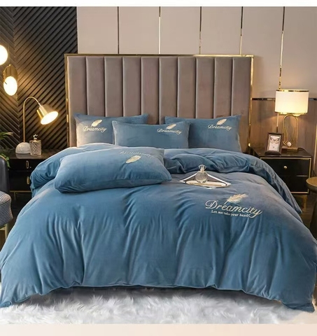 Herbst Winter Milch Samt Vierteiliges Tröster Set 200*230cm Verdickte warme Wolle Qualität Bedrucktes Muster für King Queen Bett